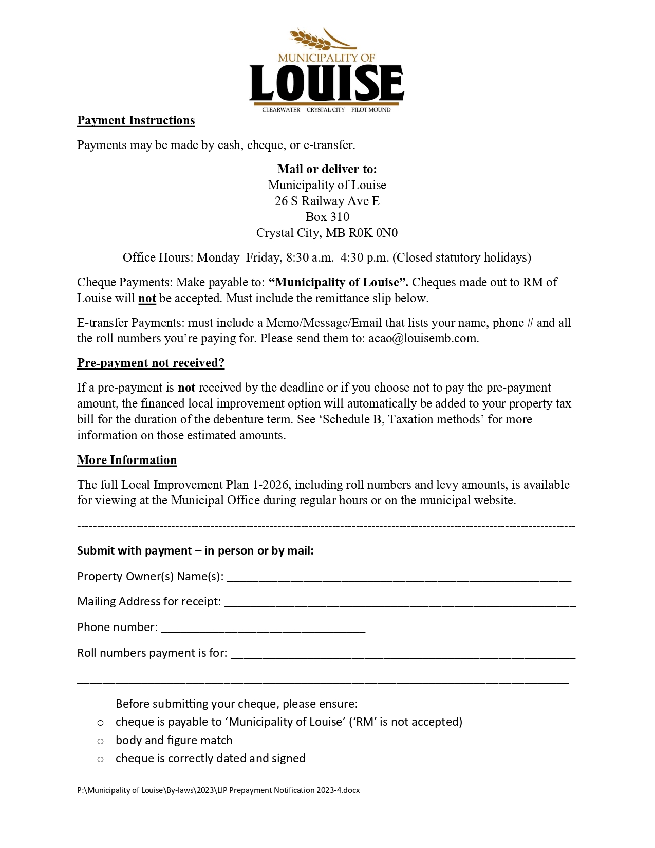 LIP 1-2026 Prepayment Notice