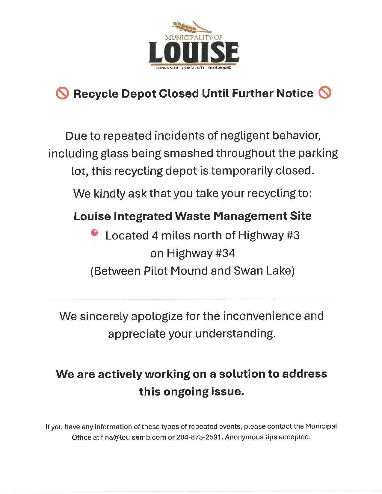 Pilot Mound Recycle Depot Closed Until Further Notice