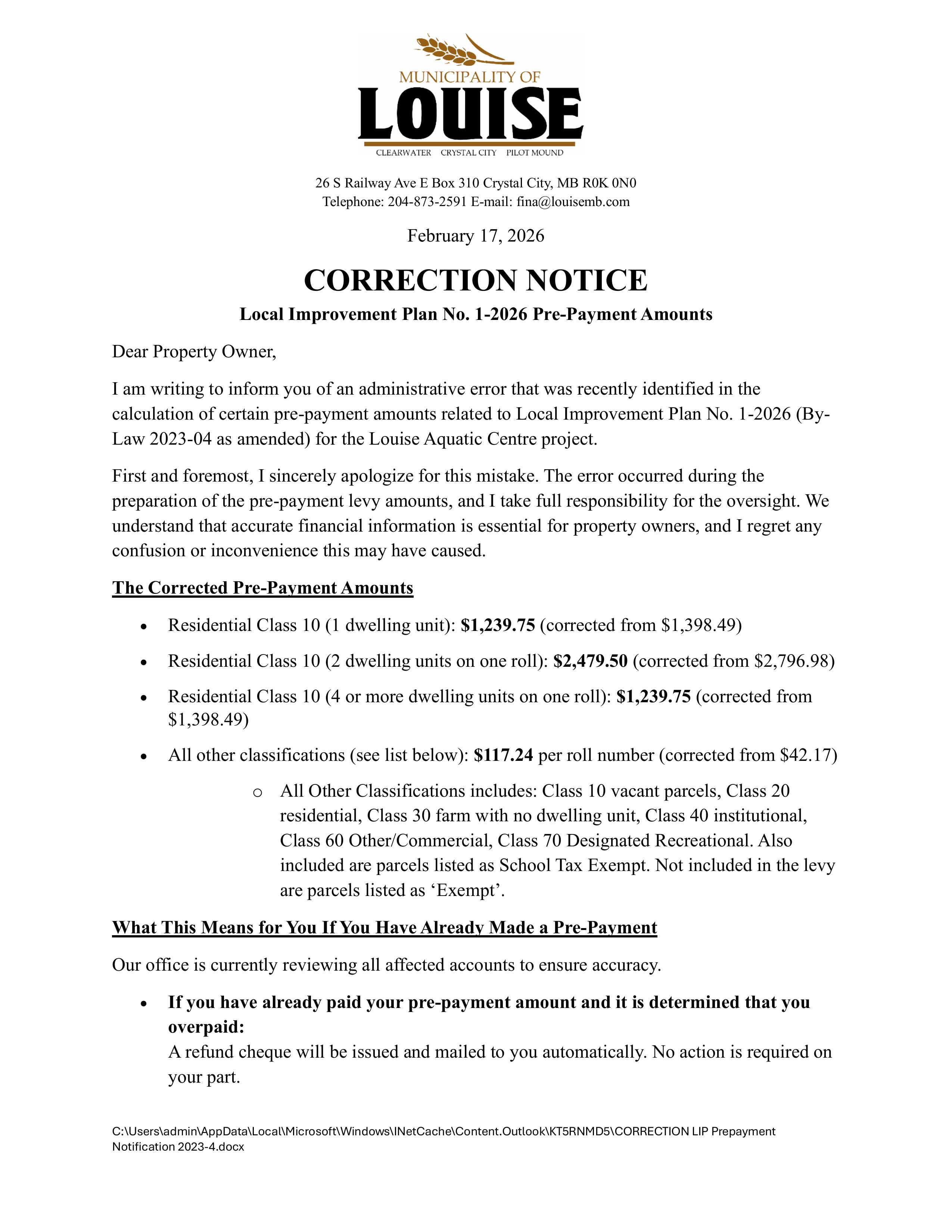 LIP 1-2026 Prepayment Notice CORRECTED